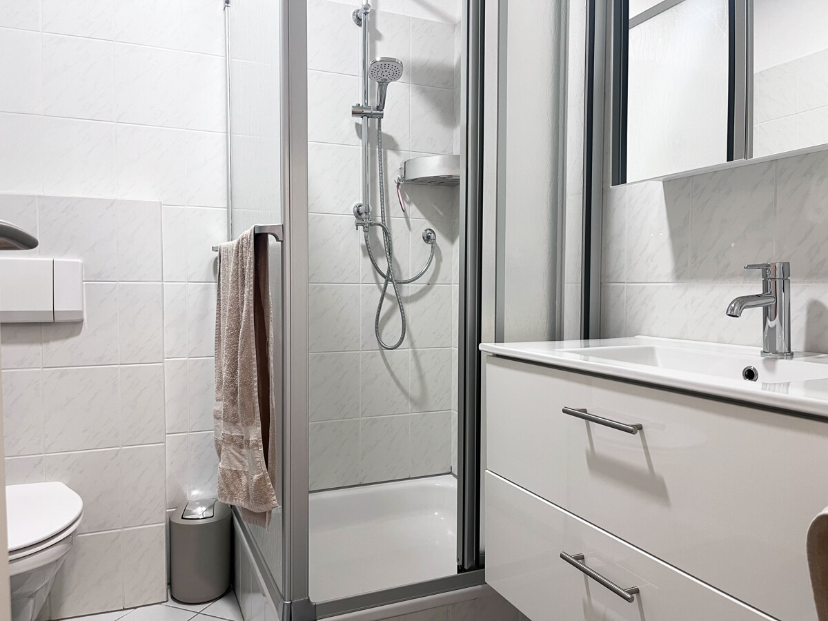 Die Wohnung befindet sich im Dachgeschoss eines Mehrfamilienhauses mit insgesamt 12 Parteien. Das Gebäude besteht aus zwei Baukörpern, sodass die zwei Eingänge und Treppenhäuser jeweils zu 6 Wohneinheiten führen.
